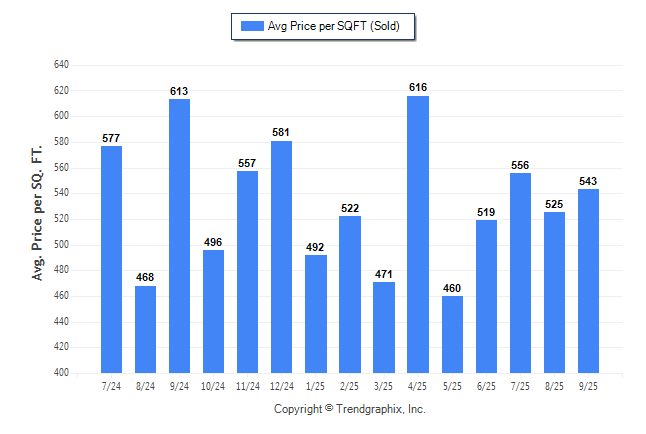 September 2025 Average Sold Price per Square Footage was Neutral**