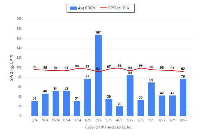 October 2025 Average Continuous Days on Market trend Remains Steady and Sold/Original List Price Ratio was Falling**