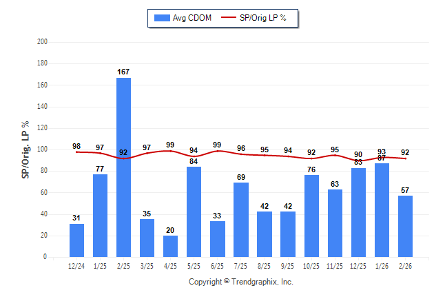 February 2026 Average Continuous Days on Market trend Remains Steady and Sold/Original List Price Ratio Remains Steady**