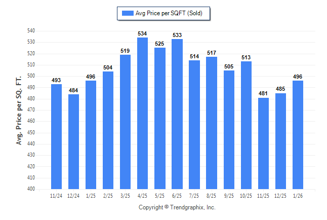 January 2026 Average Sold Price per Square Footage was Neutral**