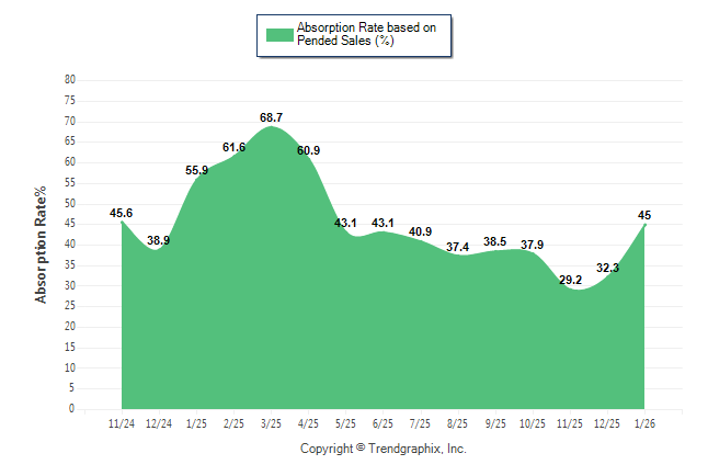 Curnt vs. Same Month 1 Yr Ago: Absorption Rate (Pended Sales) %