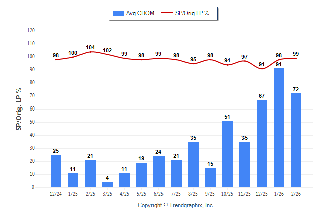 February 2026 Average Continuous Days on Market trend Remains Steady and Sold/Original List Price Ratio Remains Steady**