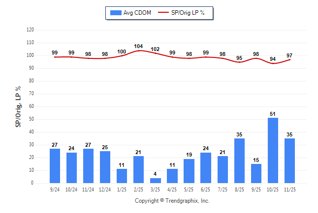 November 2025 Average Continuous Days on Market trend Remains Steady and Sold/Original List Price Ratio Remains Steady**