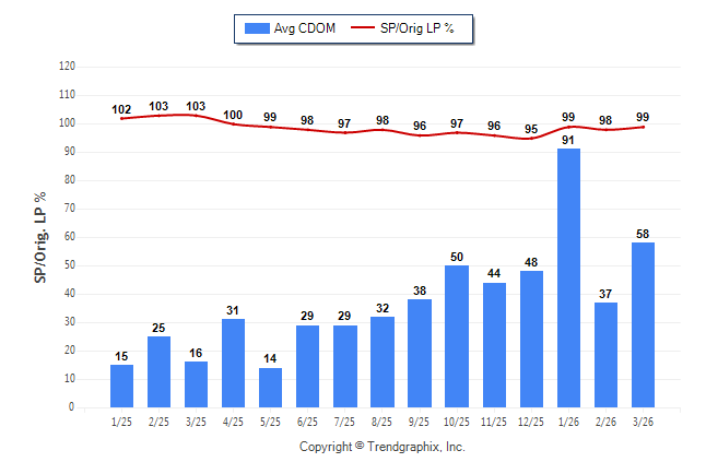 March 2026 Average Continuous Days on Market trend Remains Steady and Sold/Original List Price Ratio was Rising**