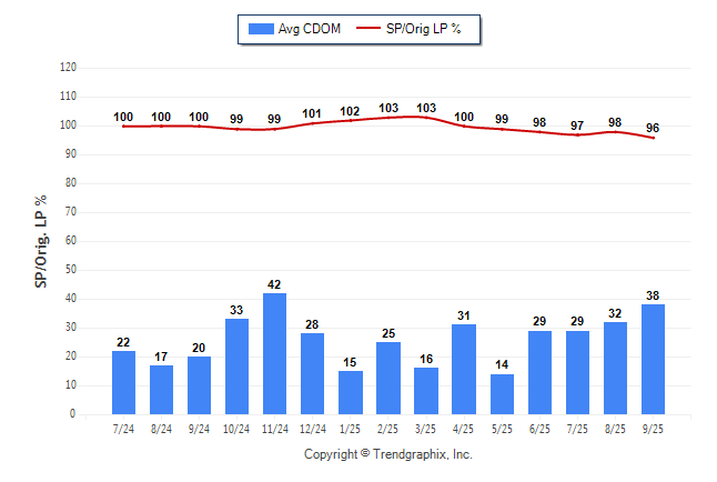September 2025 Average Continuous Days on Market trend was Rising and Sold/Original List Price Ratio was Falling**