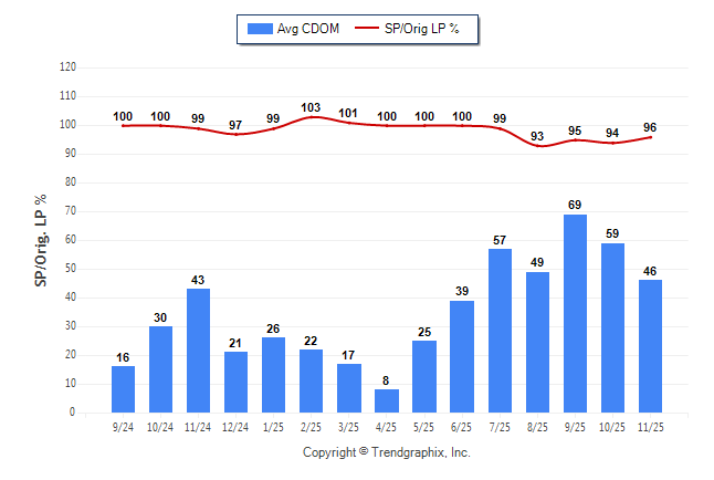 November 2025 Average Continuous Days on Market trend Remains Steady and Sold/Original List Price Ratio Remains Steady**