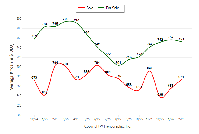 February 2026 Average For Sale Price was Neutral and Average Sold Price was Neutral**
