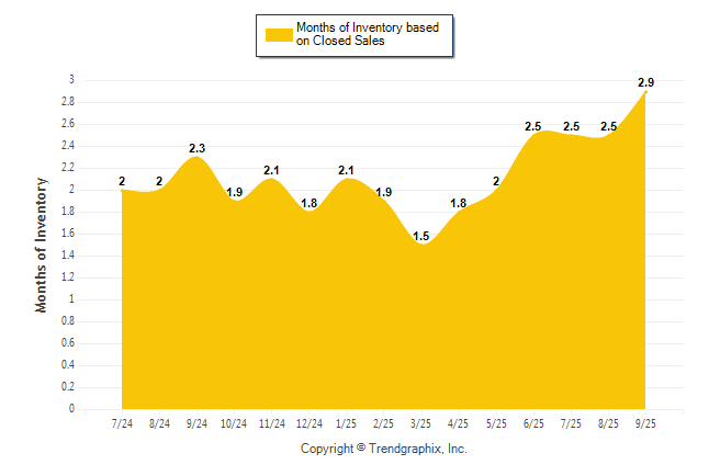 Curnt vs. Same Month 1 Yr Ago: Months of Inventory (Closed Sales)