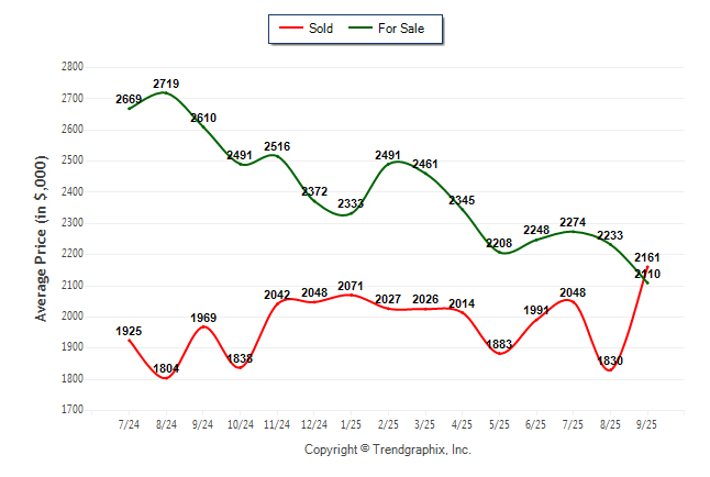 September 2025 Average For Sale Price was Depreciating and Average Sold Price was Appreciating**