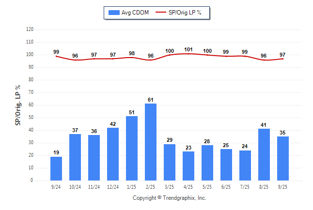 September 2025 Average Continuous Days on Market trend Remains Steady and Sold/Original List Price Ratio Remains Steady**