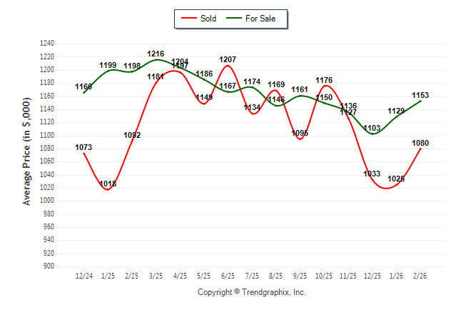 February 2026 Average For Sale Price was Neutral and Average Sold Price was Neutral**