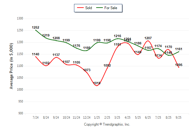 September 2025 Average For Sale Price was Neutral and Average Sold Price was Depreciating**