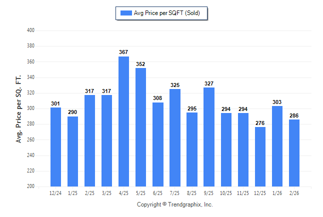 February 2026 Average Sold Price per Square Footage was Neutral**