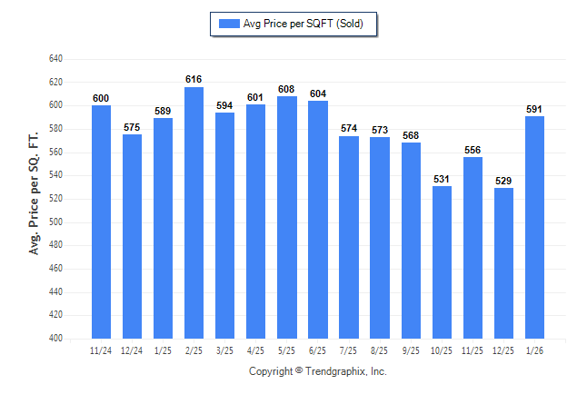 January 2026 Average Sold Price per Square Footage was Neutral**