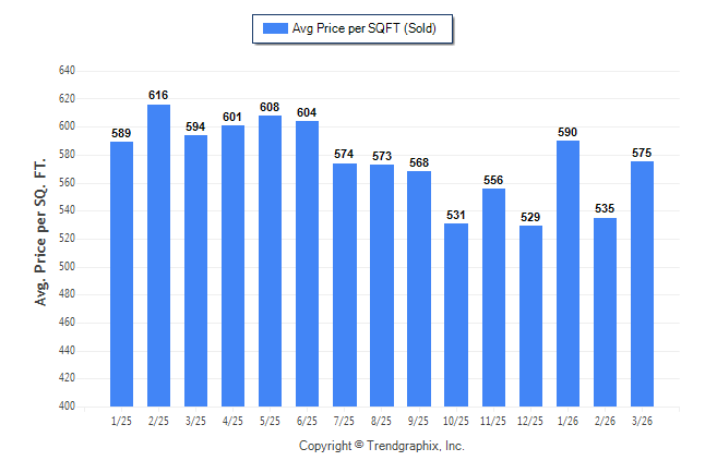 March 2026 Average Sold Price per Square Footage was Neutral**
