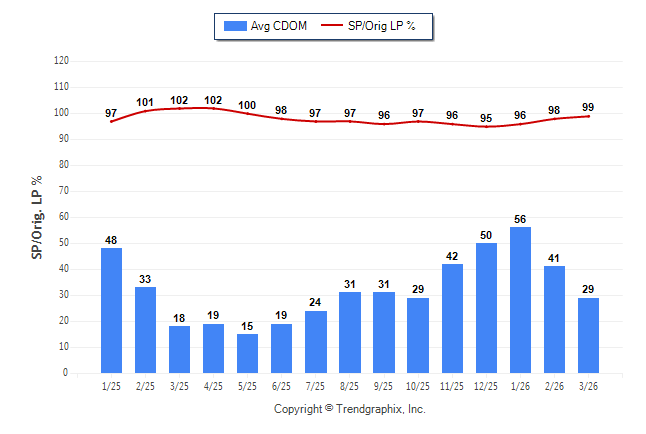March 2026 Average Continuous Days on Market trend Remains Steady and Sold/Original List Price Ratio was Rising**