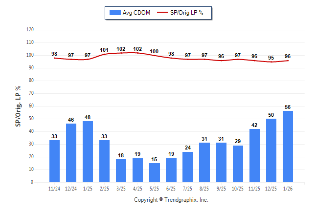 January 2026 Average Continuous Days on Market trend was Rising and Sold/Original List Price Ratio Remains Steady**