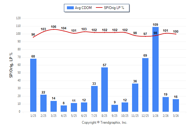 March 2026 Average Continuous Days on Market trend Remains Steady and Sold/Original List Price Ratio Remains Steady**