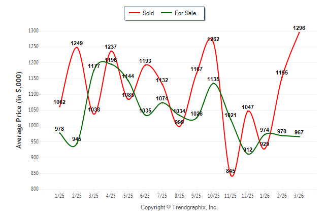 March 2026 Average For Sale Price was Depreciating and Average Sold Price was Appreciating**