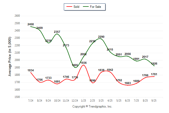 September 2025 Average For Sale Price was Depreciating and Average Sold Price was Appreciating**