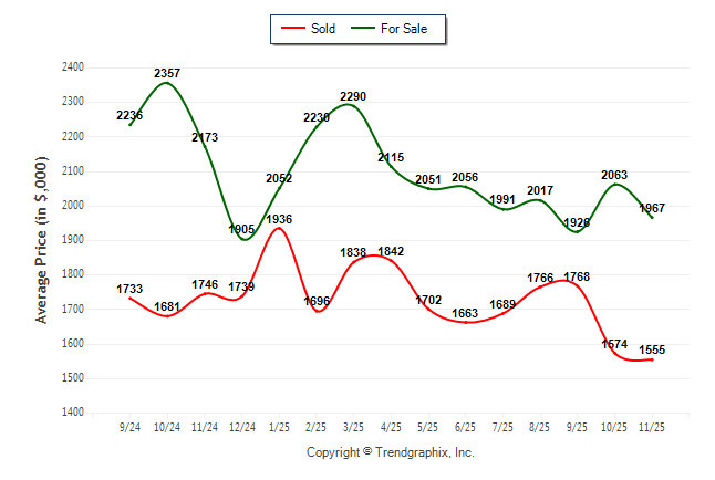November 2025 Average For Sale Price was Neutral and Average Sold Price was Depreciating**