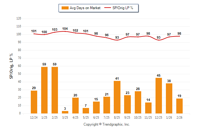 February 2026 Average Days on Market trend Remains Steady and Sold/Original List Price Ratio Remains Steady**