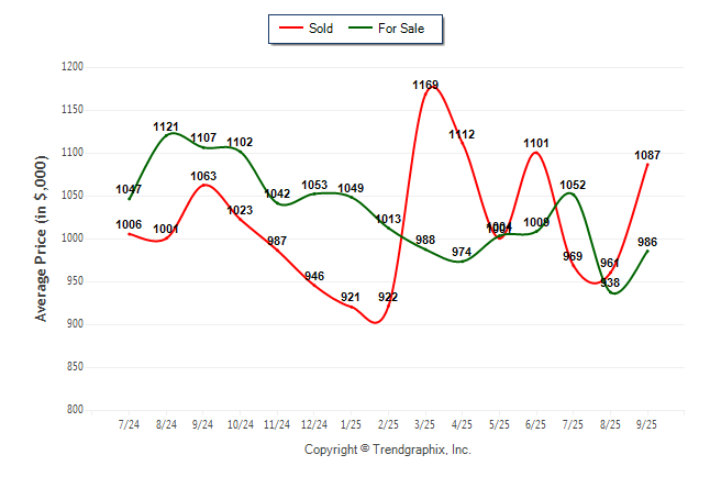 September 2025 Average For Sale Price was Neutral and Average Sold Price was Neutral**