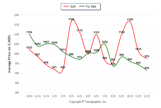 December 2025 Average For Sale Price was Depreciating and Average Sold Price was Neutral**