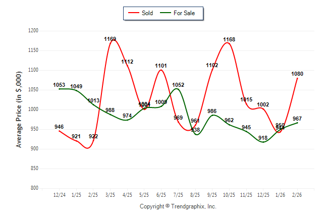 February 2026 Average For Sale Price was Neutral and Average Sold Price was Neutral**