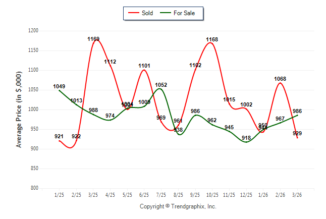March 2026 Average For Sale Price was Appreciating and Average Sold Price was Depreciating**