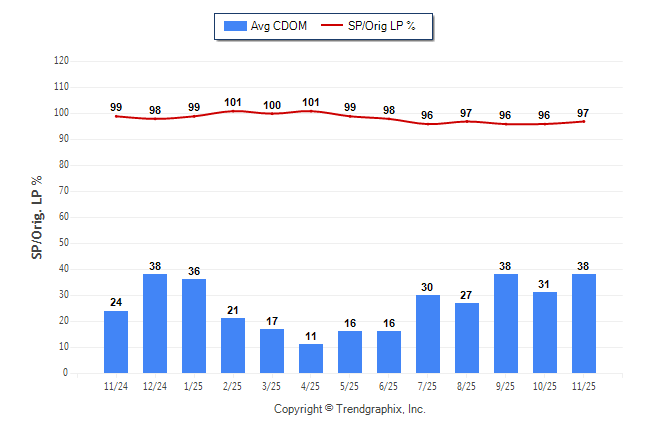 November 2025 Average Continuous Days on Market trend was Rising and Sold/Original List Price Ratio Remains Steady**