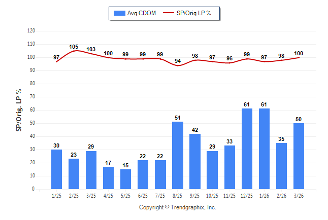 March 2026 Average Continuous Days on Market trend Remains Steady and Sold/Original List Price Ratio was Rising**