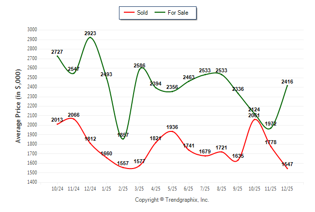 December 2025 Average For Sale Price was Neutral and Average Sold Price was Neutral**