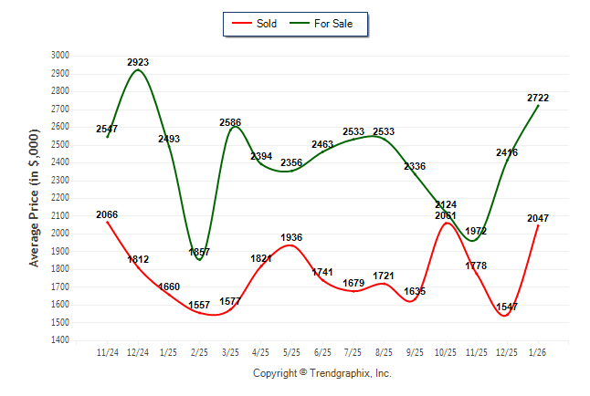 January 2026 Average For Sale Price was Neutral and Average Sold Price was Neutral**