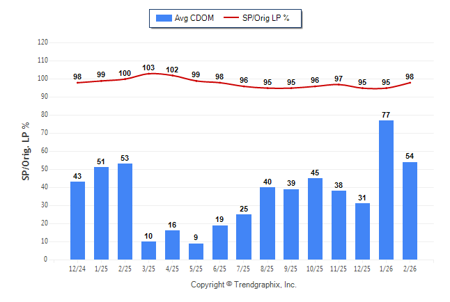 February 2026 Average Continuous Days on Market trend Remains Steady and Sold/Original List Price Ratio Remains Steady**