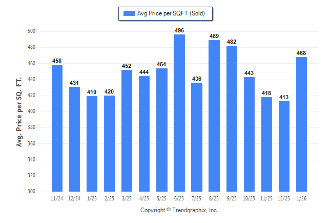 January 2026 Average Sold Price per Square Footage was Neutral**