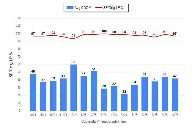 October 2025 Average Continuous Days on Market trend Remains Steady and Sold/Original List Price Ratio Remains Steady**