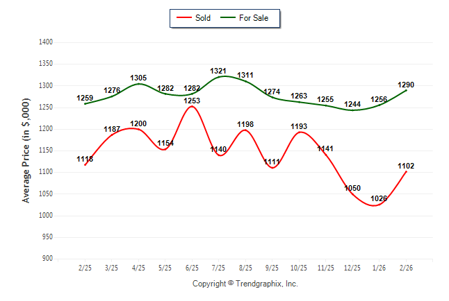 February 2026 Average For Sale Price was Neutral and Average Sold Price was Neutral**