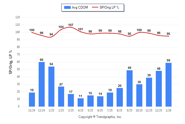 January 2026 Average Continuous Days on Market trend was Rising and Sold/Original List Price Ratio was Falling**