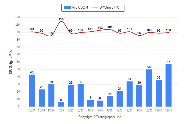 December 2025 Average Continuous Days on Market trend was Rising and Sold/Original List Price Ratio was Rising**