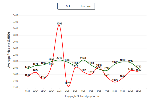 November 2025 Average For Sale Price was Neutral and Average Sold Price was Neutral**