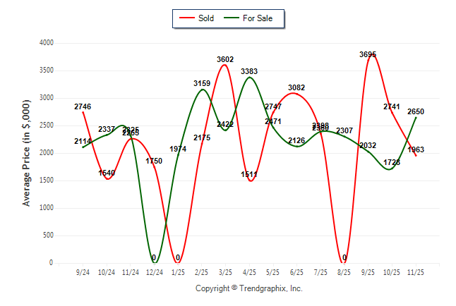November 2025 Average For Sale Price was Neutral and Average Sold Price was Depreciating**