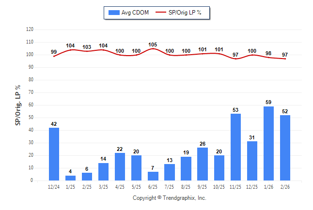February 2026 Average Continuous Days on Market trend Remains Steady and Sold/Original List Price Ratio was Falling**