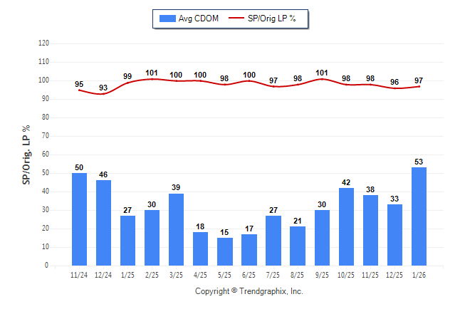 January 2026 Average Continuous Days on Market trend was Rising and Sold/Original List Price Ratio Remains Steady**