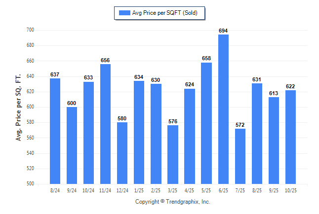October 2025 Average Sold Price per Square Footage was Neutral**