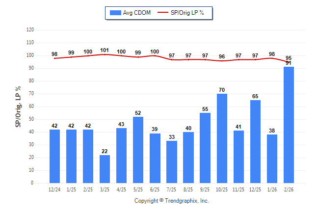 February 2026 Average Continuous Days on Market trend was Rising and Sold/Original List Price Ratio Remains Steady**