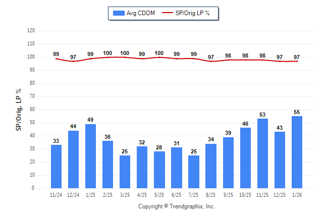 January 2026 Average Continuous Days on Market trend was Rising and Sold/Original List Price Ratio was Falling**