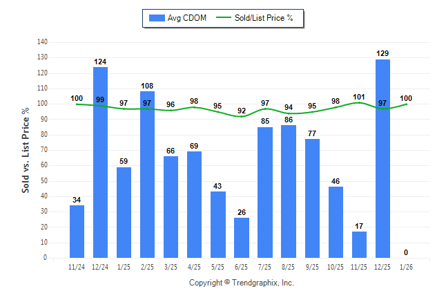 January 2026 Average Continuous Days on Market trend was Falling and Sold/List Price Ratio Remains Steady**