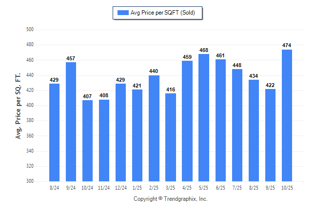 October 2025 Average Sold Price per Square Footage was Neutral**
