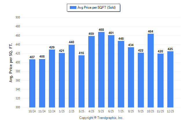 December 2025 Average Sold Price per Square Footage was Neutral**